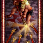 Старшие Арканы нумерованы по классике, Младшие — прорисованы. Ключевая особенность, на которую стоит обратить внимание — это добавление четырёх дополнительных карт, названных Дворцами — судя по всему, это те самые мистические обиталища придворных персонажей.