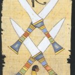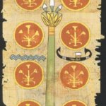 Если говорить об общих особенностях, то Египетское Таро, галерею которого вы видите на этой странице, нельзя отнести к какой-то особой традиции. В иллюстрациях можно найти отголоски Уэйта, Марселя и даже Кроули, поэтому назовём карты уникальными. Для тех, кому важна нумерация Старших Арканов: Шут 0, Правосудие 8, Сила 11. Масти традиционны (Мечи, Жезлы, Пентакли, Чаши), но Младшие Арканы сюжетного рисунка не имеют. Колода наполнена древнеегипетской символикой: глаз Гора, око Ра, анкх и многие другие известные символы встречаются практически на каждой карте. В иллюстрациях Старших Арканов вы встретите знакомых многим из школьного курса истории богов, фараонов, обычных людей, занимающихся каким-то привычными для того времени делами. В целом колоду действительно нужно изучать — прорабатывать, как это называется сейчас, поскольку с первого взгляда не всегда понятно, о каком именно мифе или событии идёт речь.