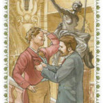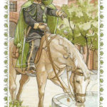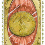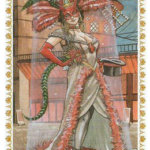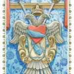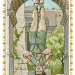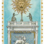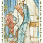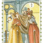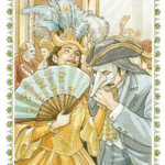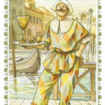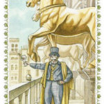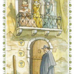 Если вы посмотрите внимательно на Арканы галереи Романтического Таро, то сразу заметите, что даже Козыри здесь совершенно не напоминают классические. Да, некоторые сюжеты всё-таки с трудом, но можно назвать традиционными, в то время как другие представляют собой художественную реализацию авторской задумки. Самый крупный портал, посвящённый миру Таро — Розамира — относит эти карты к Уэйтовской традиции, однако я бы не сказала, что это так. Это совсем не клон Уэйта, плюс автор по-своему разделил Младшие Арканы на масти. Нет-нет, сами названия мастей остались прежними, просто каждая из них показывает сюжеты, происходящие в одном из самых романтических городов мира, и это, пожалуй, главная «фишка» колоды. Жезлы — это Париж, Чаши — Венеция, Мечи — Вена, Пентакли — Рим. От Уэйта в творении Сигнорини и Массаглия осталась лишь нумерация: Шут — 0, Сила — 8, Правосудие — 11.