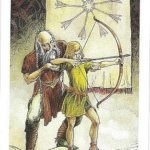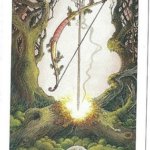 Младшие Арканы в колоде прорисованы. Сюжеты очень красочные, интересные и, само собой, связанные с природой. Масти нетрадиционны: вместо Жезлов здесь представлены Луки, вместо Чаш — Сосуды, место Мечей заняли Стрелы, а Пентаклей — Камни.