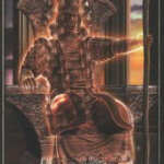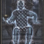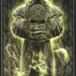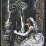 Названия карт в галерее Таро Призраков, как вы, наверное, уже заметили, не присутствуют вовсе. На Старших Арканах мы видим лишь номера внизу и вверху карты, на Младших — сверху цифру, внизу — символ масти. Придворные карты помечены аналогично: в верхней части небольшой значок, символизирующий титул фигурного Аркана, снизу — его масть. Впрочем, во всех сюжетах вполне узнаётся старый добрый Уэйт, правда значительно переработанный под основную тематику колоды. Само собой, замена живых людей призраками сказалась и на толкованиях — они приобрели новые смысловые оттенки, что является ещё одним плюсом творения Дэвида Корси. Рубашка колоды в галерее Таро Призраков напоминает узор медной решётки на сине-фиолетовом мистическом фоне. Лично мне показалось, что это символ той самой границы между мирами живых и мёртвых. По центру узора виднеются очертания глаза, что, видимо, предполагает возможность заглянуть в мир невидимого с помощью этой уникальной колоды. Главные герои карт — призраки, каждый из которых рассказывает нам свою историю. Сказания все эти очень разные: любовные, романтические, грустные, трагические, одним словом — на любой вкус и цвет.