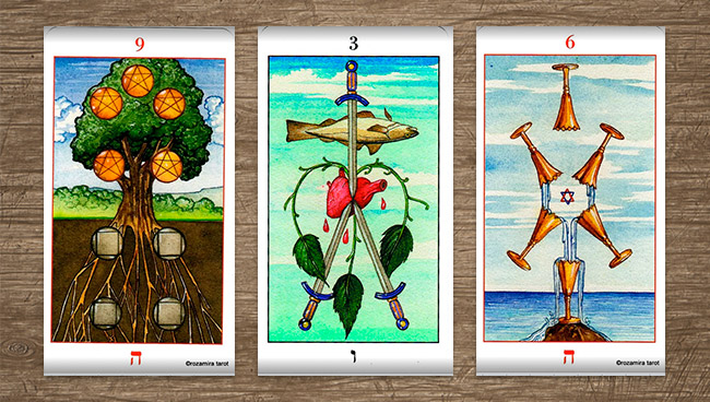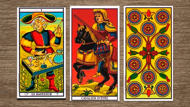 В Марсельском Таро нет значений как таковых. Каждая карта не более чем арабеска, узорная вязь, смысл которой предстоит разгадать. Марсельское Таро с полным правом может претендовать на звание алфавита «языка птиц». И здесь каждая деталь, каждый завиток может иметь значение, подсказывая или утаивая некие смыслы, нюансы, тонкости.